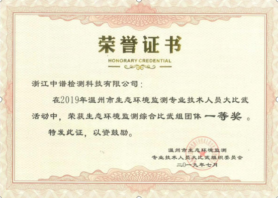 近期,溫州市生態(tài)環(huán)境監(jiān)測(cè)專業(yè)技術(shù)人員綜合大比武順利舉行。我公司全資子公司浙江中譜檢測(cè)科技有限公司獲得第一名的好成績(jī)。