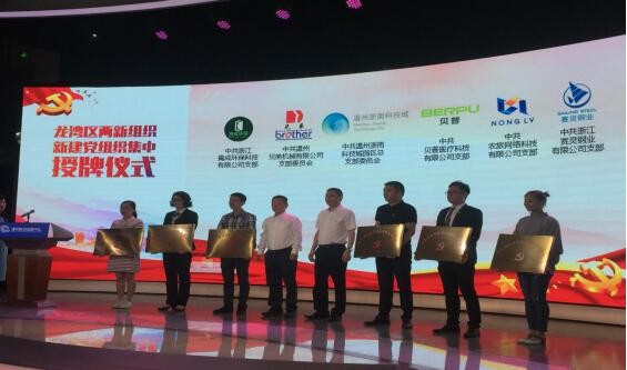 5月11日上午,龍灣區(qū)兩新組織新建黨組織集中授牌儀式在浙南科技城溫州科技金融路演中心舉行。市委組織部副部長、兩新工委書記滕榮權(quán),溫州高新區(qū)黨委副書記、管委會常務副主任、龍灣區(qū)人民政府黨組副書記、溫州浙南科技城管委會主任趙典霖,溫州高新區(qū)黨委委員、溫州浙南科技城管委會(溫州高新區(qū)管委會)調(diào)研員周鈞,區(qū)委常委、永中街道黨工委書記葉慶權(quán),區(qū)委常委、組織部長蔡軍令,市委組織部兩新處處長朱啟仁出席儀式。儀式由蔡軍令主持。